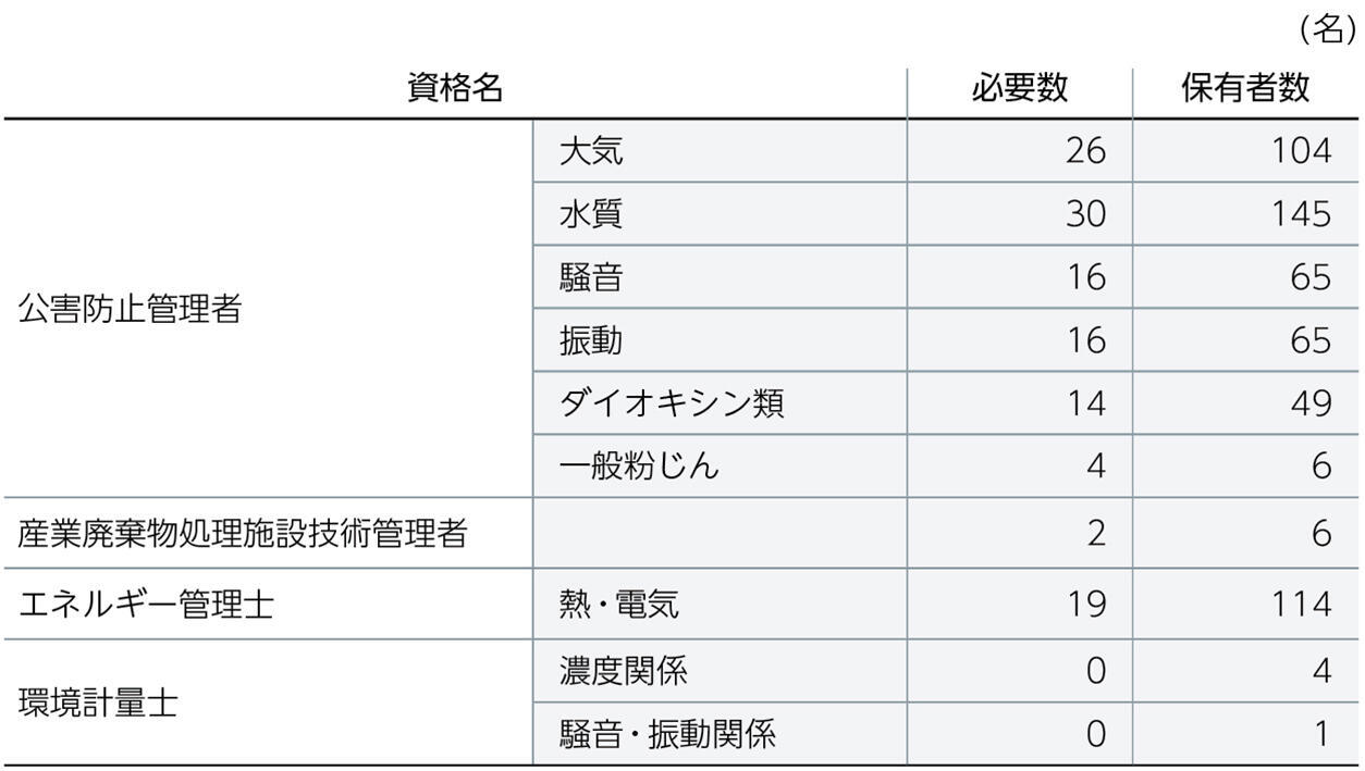 当社グループでは、環境法などの動きに迅速に対応できる人財を育成するため、環境関連公的資格の取得に伴う法律の知識習得が有効な方法の一つと考え、各種資格の取得を推奨しています。スムーズな世代交代のため、若い世代環境監査 の教育・育成に力を入れており、人財の確保に努めています。
