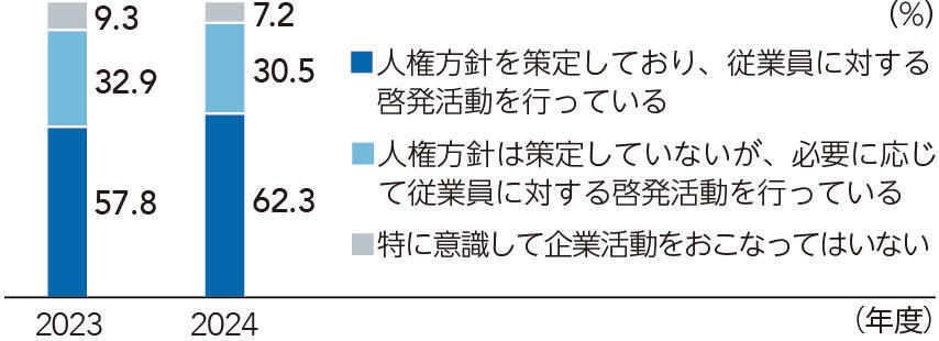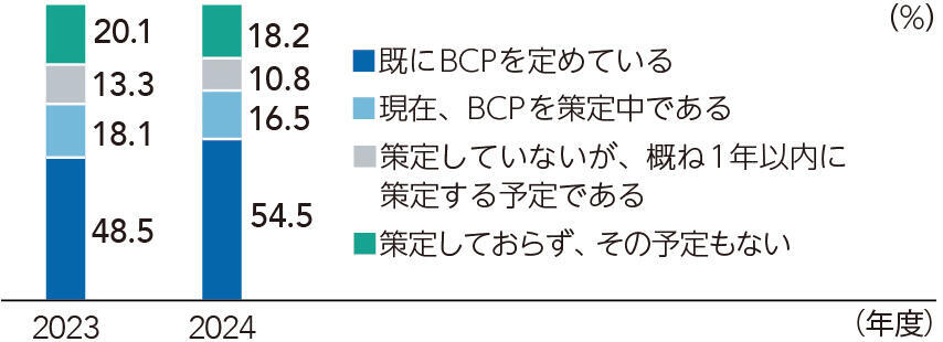 その他にも、人権問題への対応に関する設問「自社の姿勢として人権擁護等に配慮していますか?」については「人権方針を策定しており、従業員に対する啓発活動を行っている」と回答したサプライヤーが前年の58%から62%へと、約4ポイント増加しました。大規模災害を想定したBCP(事業続続計画)を問う設問では、「既にBCPを策定している」と答えた企業が前年の48%から54%へと上昇し、強靭なサプライチェーン構築への意識の高まりを示す結果となりました。
