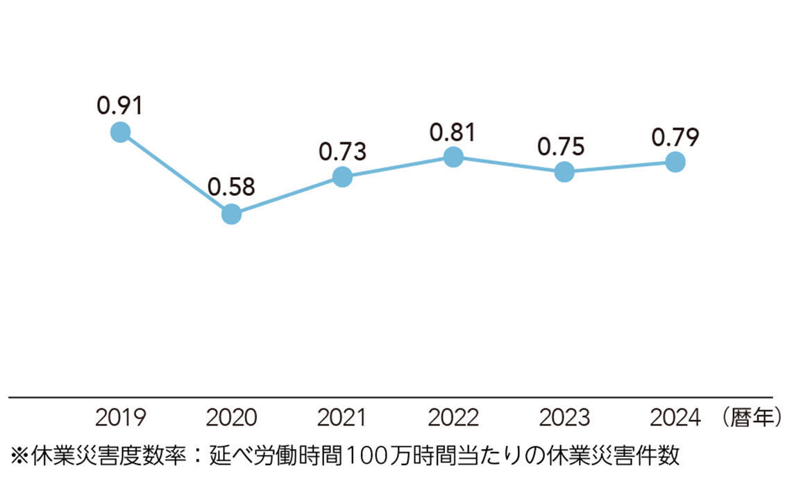 休業災害が減らない要因は、過去の発生事案の多くが「定常作業であるが、リスクアセスメントが未実施」であることと、「非定常作業」で発生していることにあります。そのため2024年度安全衛生活動方針、安全衛生活動計画にて、それらをターゲットに対策を進めていますが、残念ながら減少には至っていません。